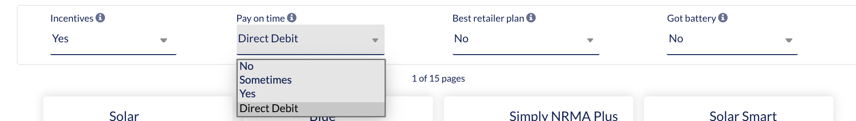 By default, your Bill Hero results screen loads with the Pay on time filter set to 'Direct Debit'. This tells Bill Hero to include all conditional discounts in the calculations, inclusive of any incremental additional discounts, meaning that the alternative plans are shown in their best light, and will reveal the maximum savings available to you. You can then choose an alternative setting to see how prices change, and how rankings change depending on your payment behaviour.