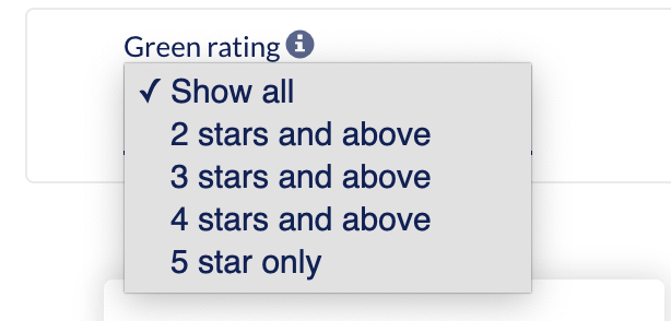 You can filter your results by Green rating, to display only the plans from retailers which are rated at or above your chosen Green star level.