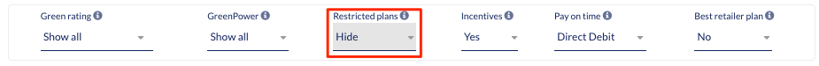 You can use the 'Restricted plans' filter to show or hide these kinds of plans in your Bill Hero results.