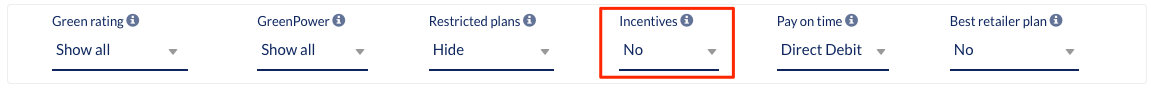 It's common that the retailers will make incentives available only to new customers. If you see an incentive listed in an alternative plan from your current retailer, you can use the Incentives toggle to remove incentives from the calculation and comparisons.